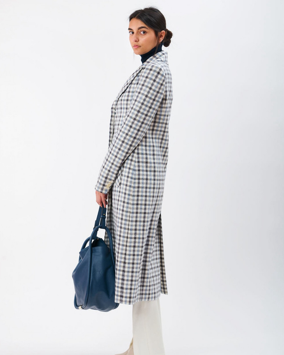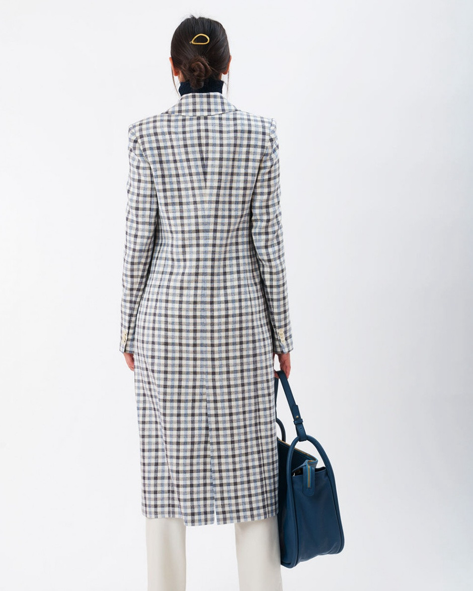 Abrigo recto con solapas en tejido estampado confeccionado en algodón 100%.
