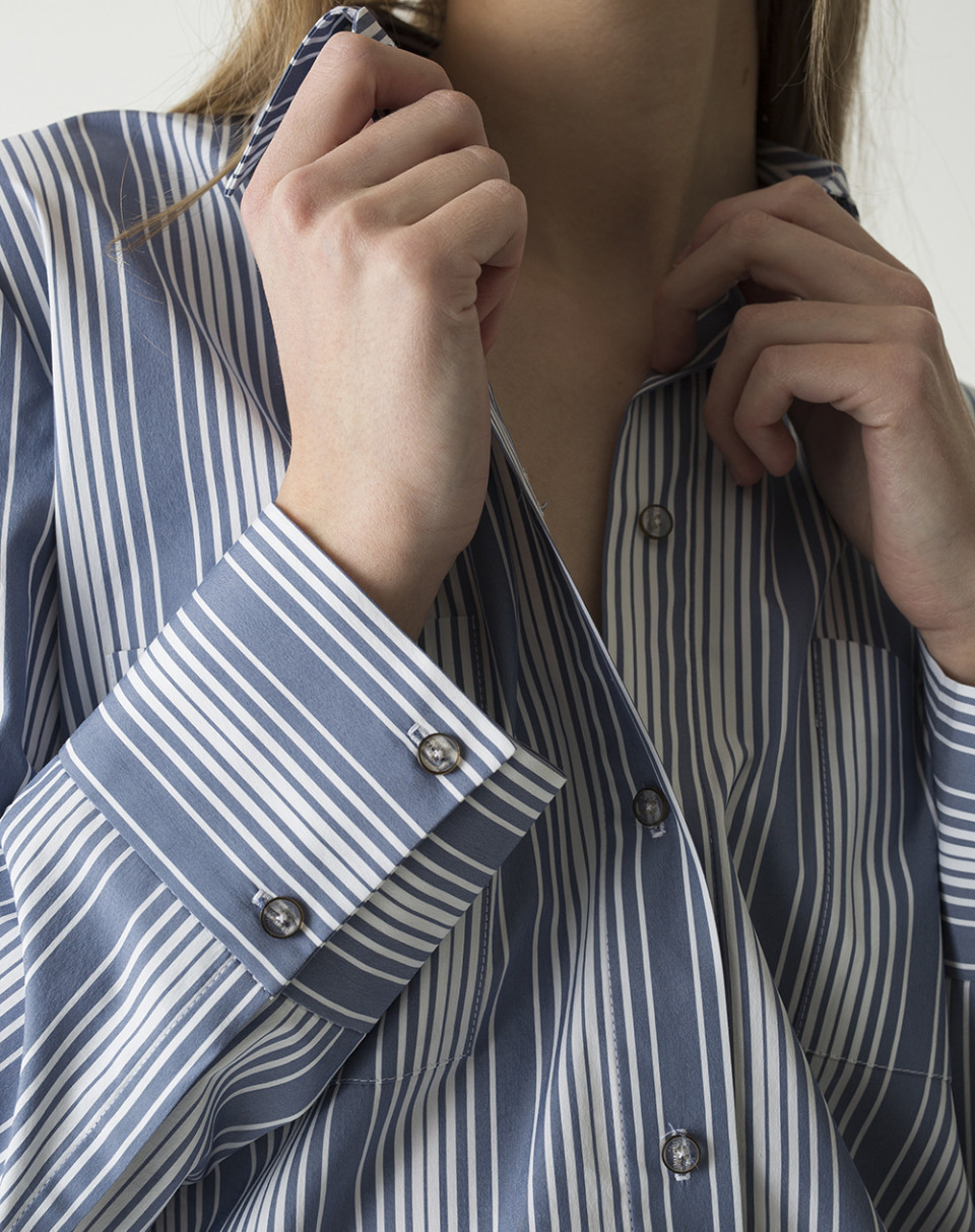 Camisa corte recto estampado rayas.