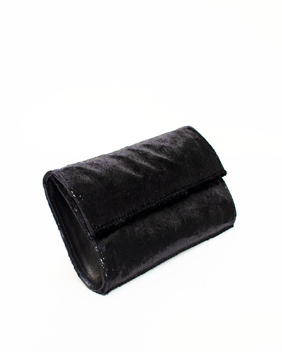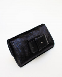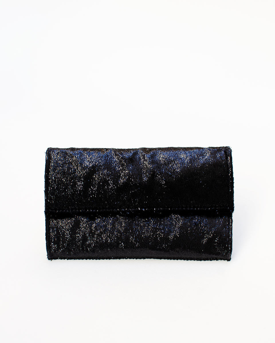 Bolso, cartera pulsuera de fiesta. Hecho en piel y forrado en tejido negro brillante.