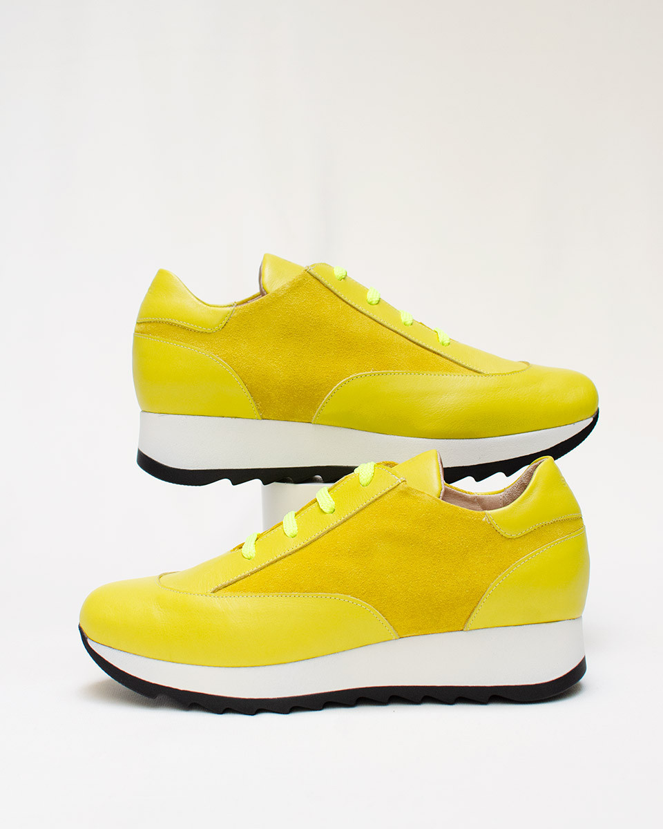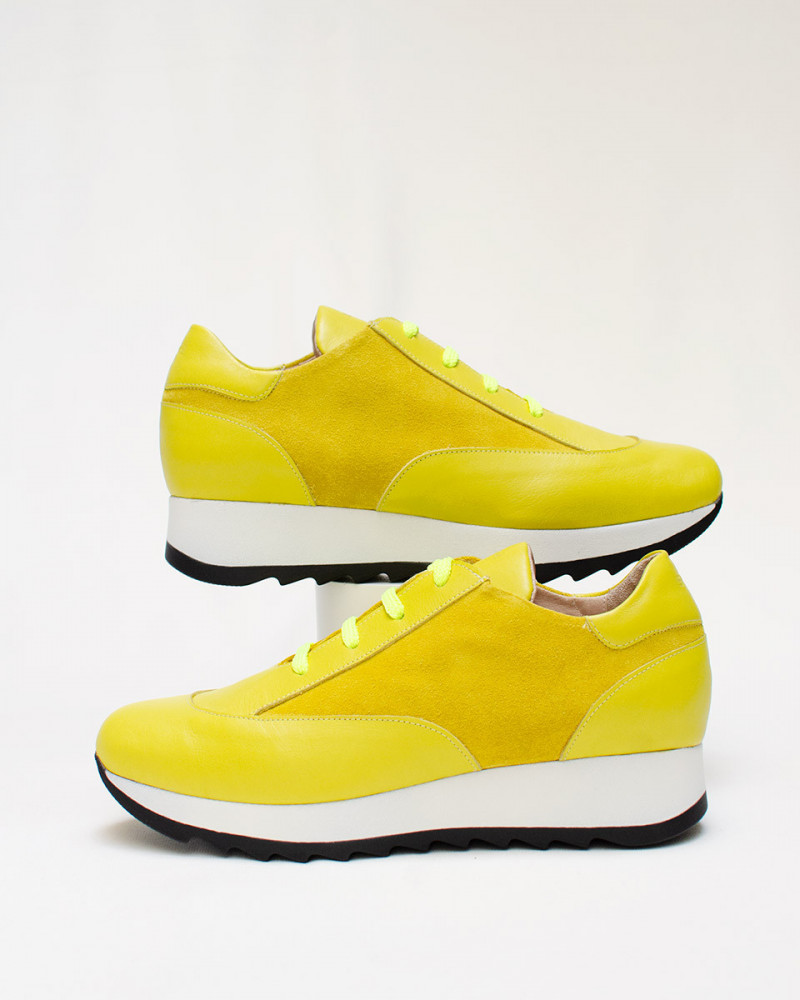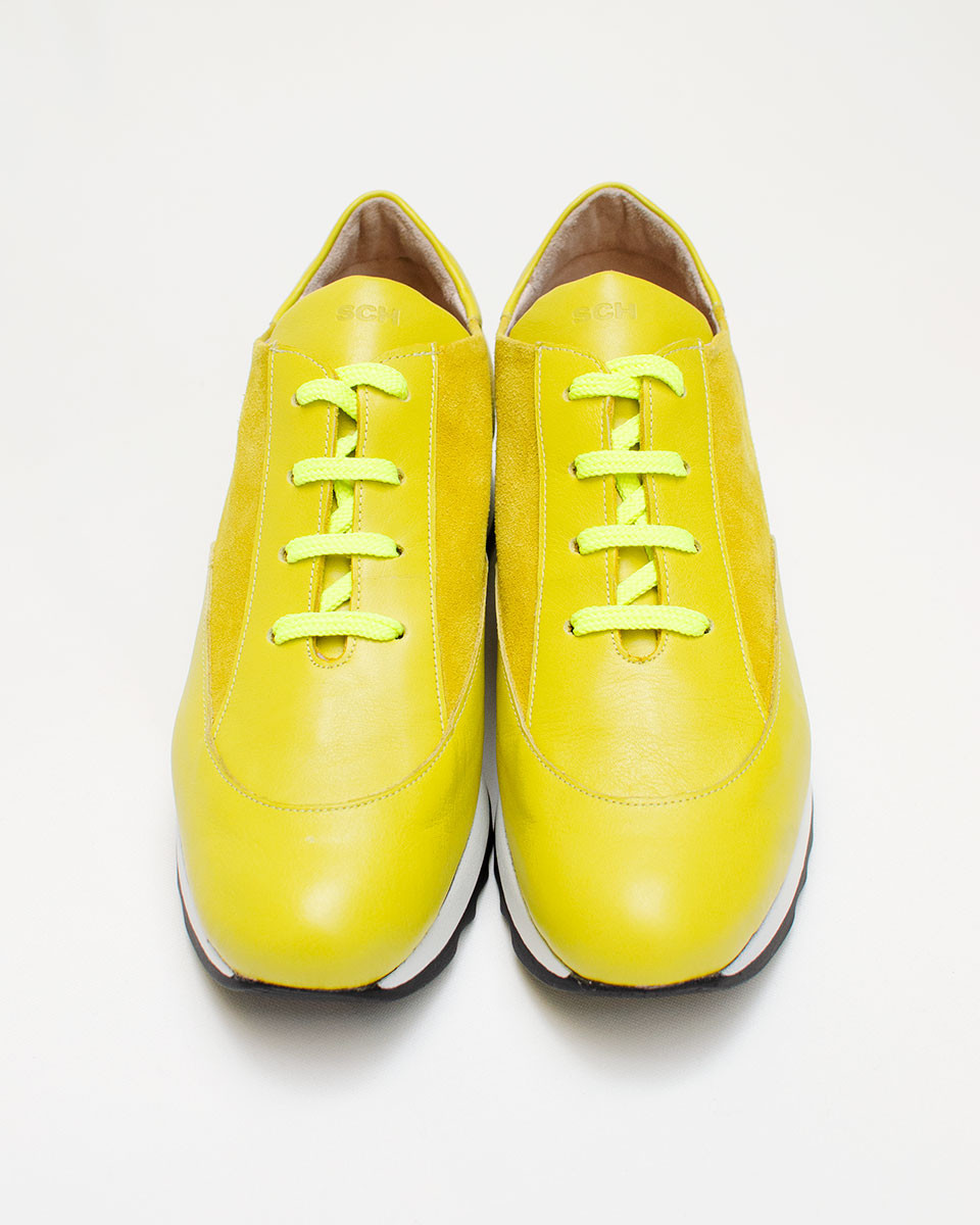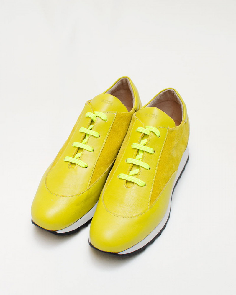 Deportivas casual de piel a dos texturas, cierre con cordones. Estas deportivas combinan fácilmente con los bolsos de la colección.