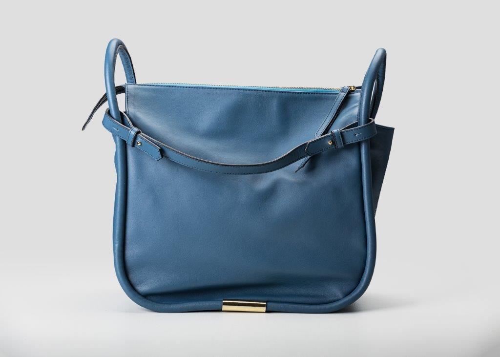 Bolso shopper azul con cremallera. Doble asa y bolsillo interior.