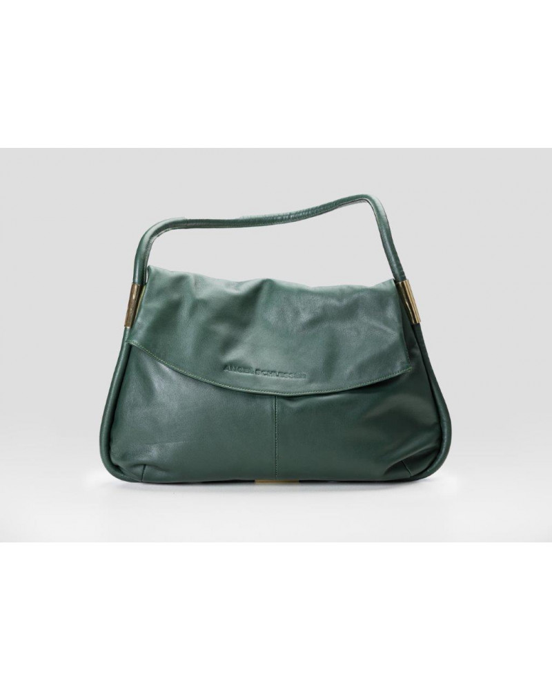 Cuero, un asa, bolsillo interior, cierre solapa