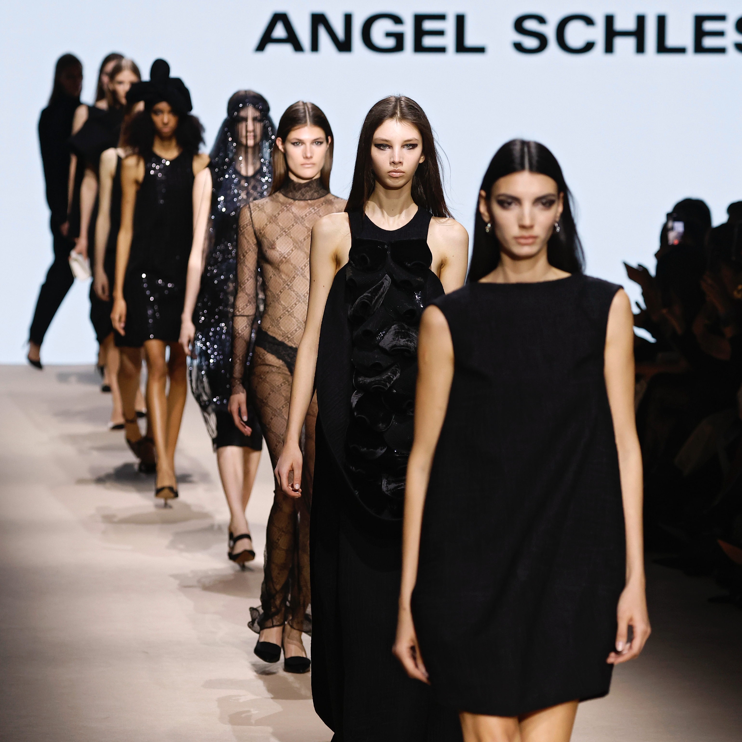 Las prendas, confeccionadas en algodón, tul y crinolina, destacan por su construcción y por una paleta dominada por la ausencia de color, donde el negro adquiere un papel protagonista.