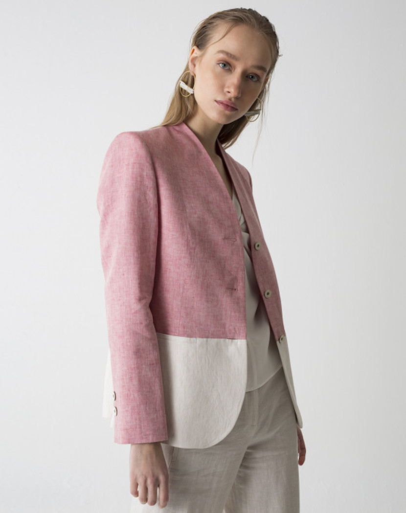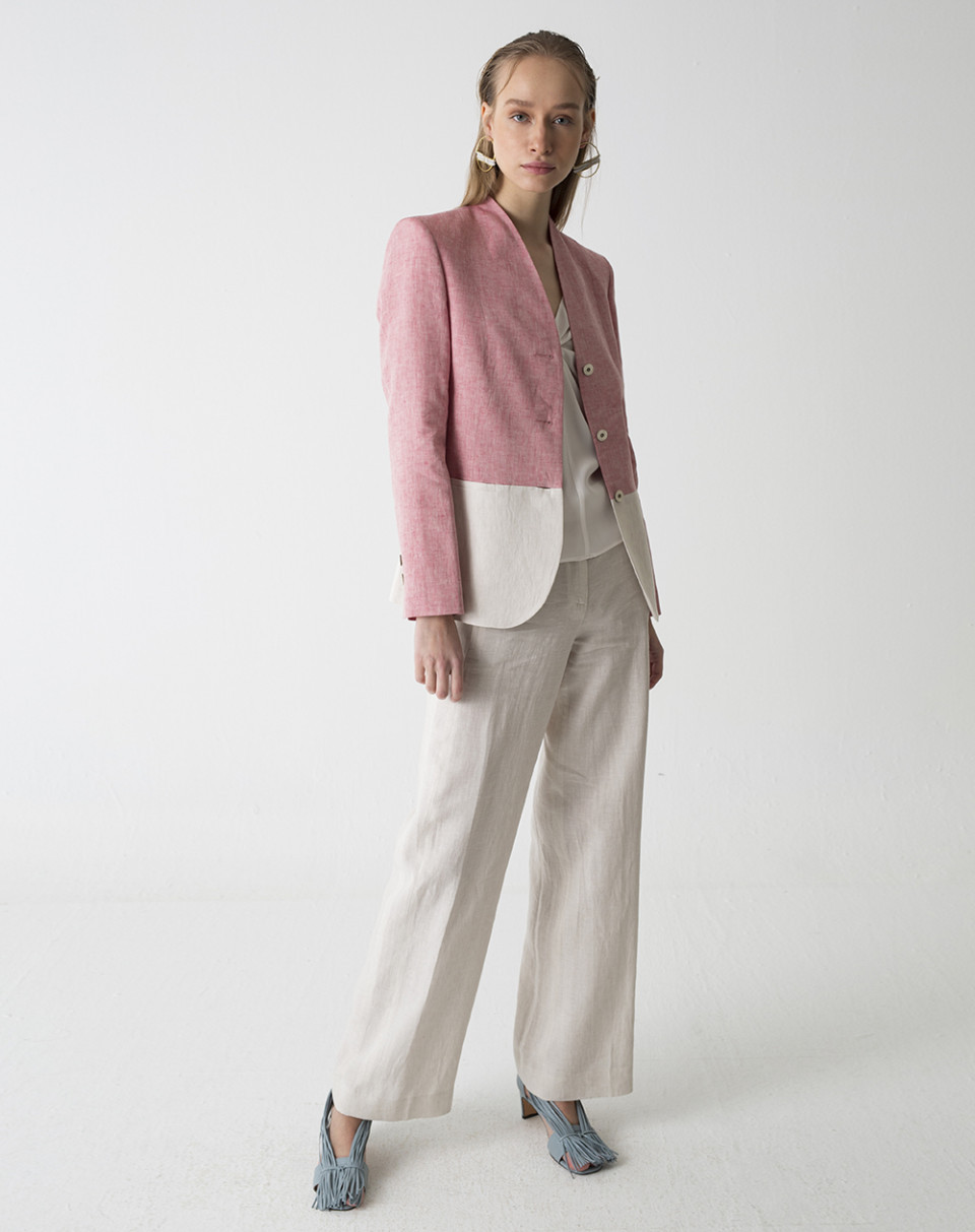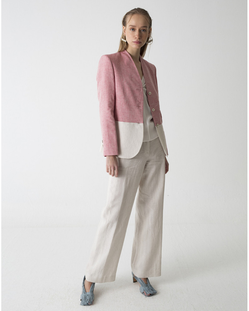 Chaqueta bicolor de lino 100%.