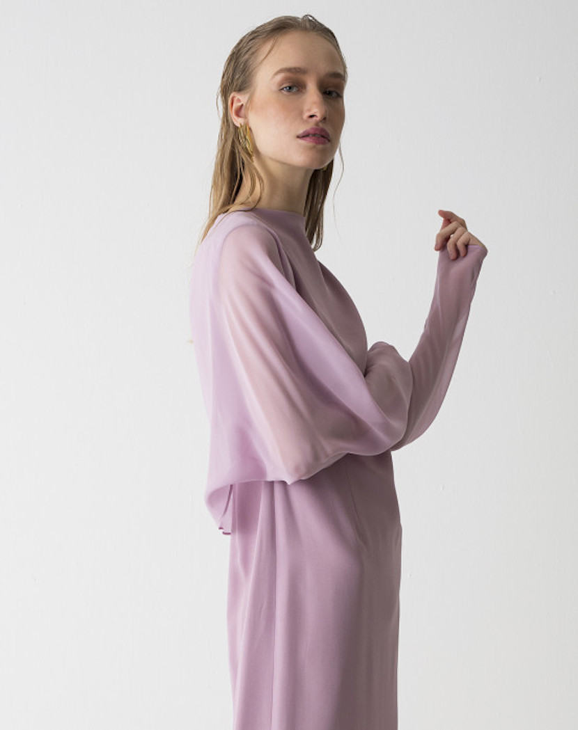 Chaqueta corta estilo torera, confecionada en seda 100%, con mangas murciélago y botones en puños.
