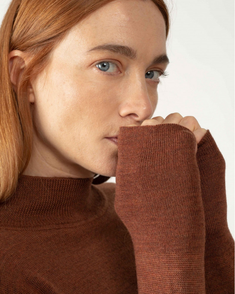 Jersey de cuello alto ribeteado, confeccionado en lana extrafina.