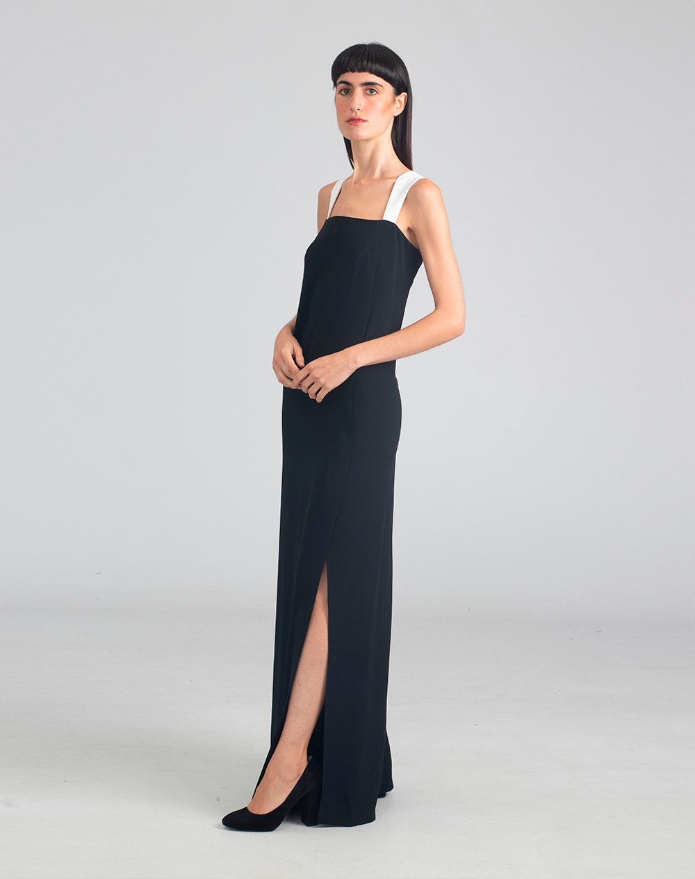 VESTIDO LARGO SEDA 100% TIRANTE ASIMÉTRICO